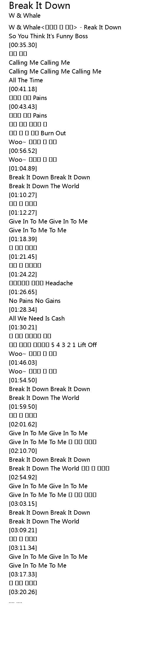 | [00:00.53] | W & Whale<더블유 앤 웨일> - Reak It Down |