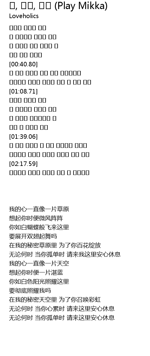 | [00:41.15] | 내 비밀 초원에 너를 위해 꽃을피울게 |