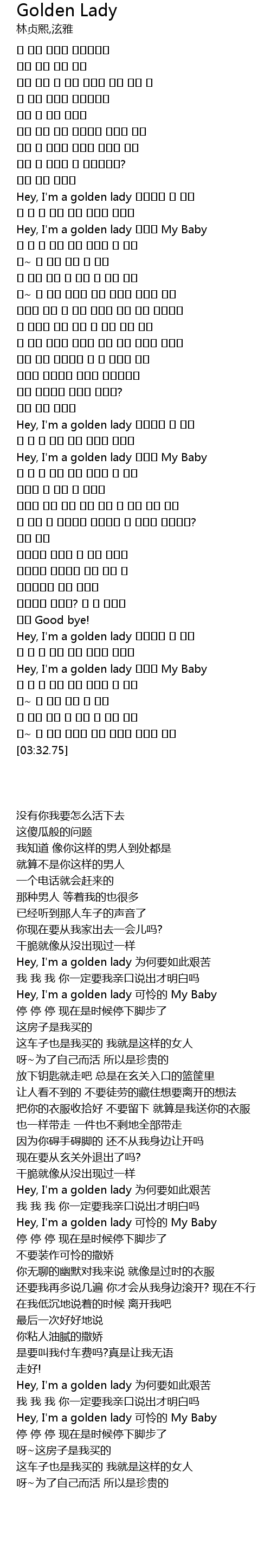 Hey, I'm a golden lady 불쌍한 My Baby |
