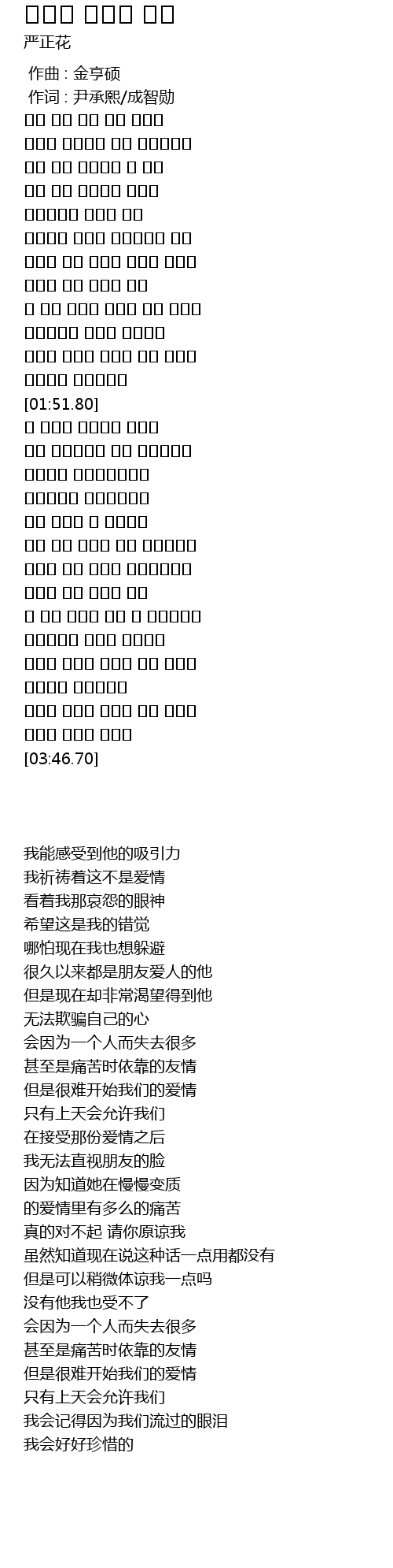 | [00:42.70] | 나를 보는 안타까운 그 눈빛 |
