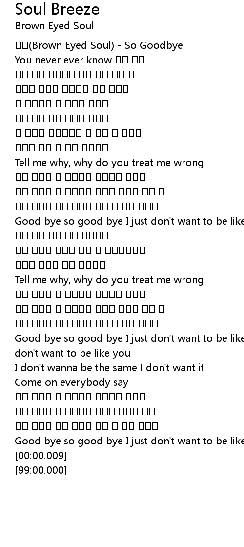 | [00:00.44] | Brown Eyed Soul So Goodbye |