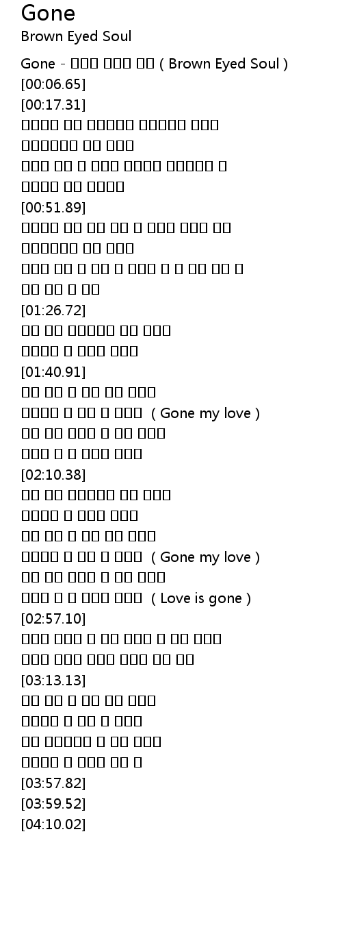 | [00:01.22] | Gone - 브라운 아이드 소울(Brown Eyed Soul) |