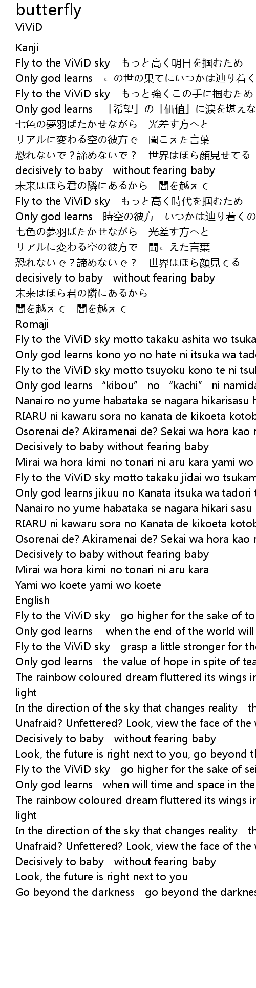 | Fly to the ViViD sky motto takaku ashita wo tsukamu tame | |