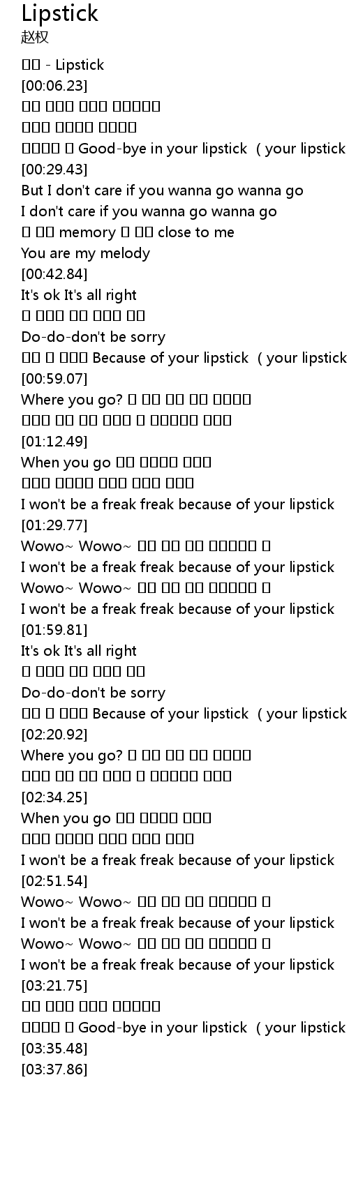 | [03:17.76] | I won't be a freak freak because of your lipstick |