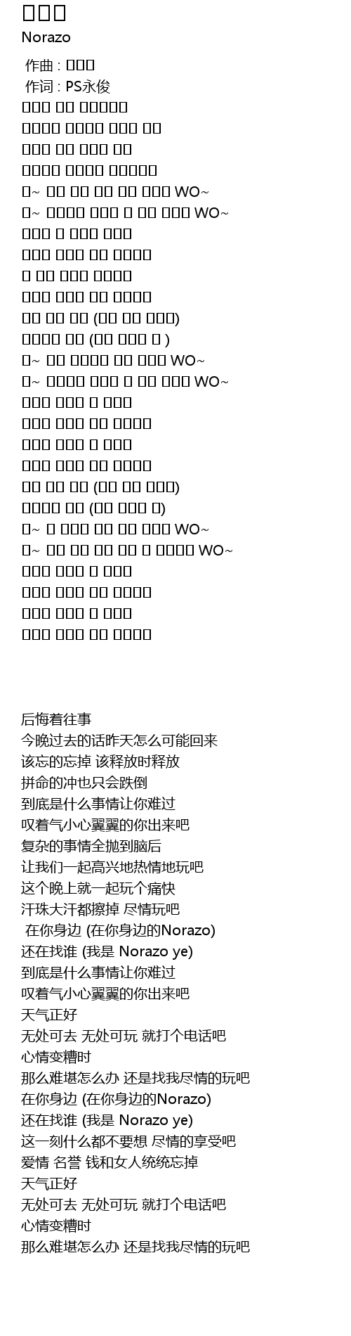 | [00:01.00] | 作词 : PS永俊 |