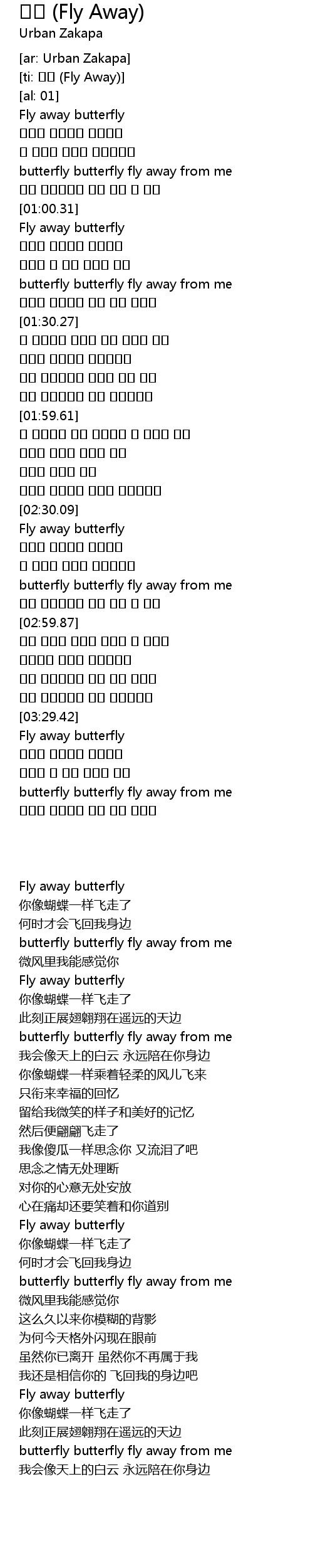 | [01:17.58] | butterfly butterfly fly away from me |