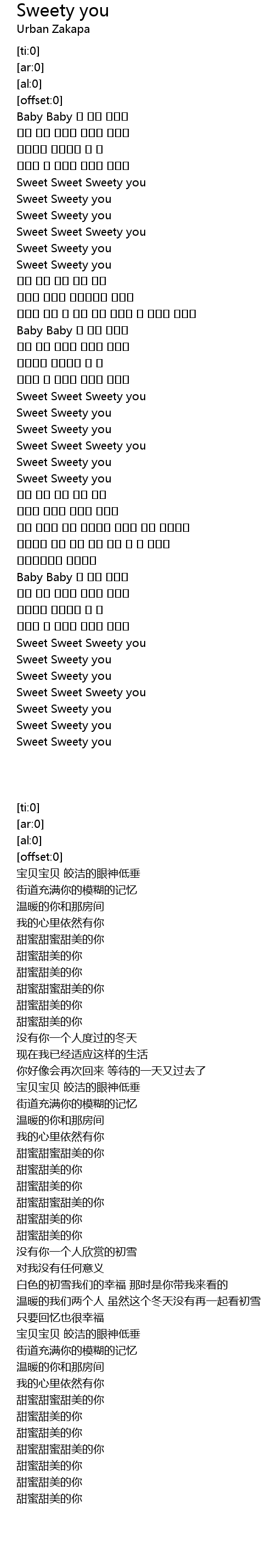 | [00:38.98] | Sweet Sweet Sweety you |