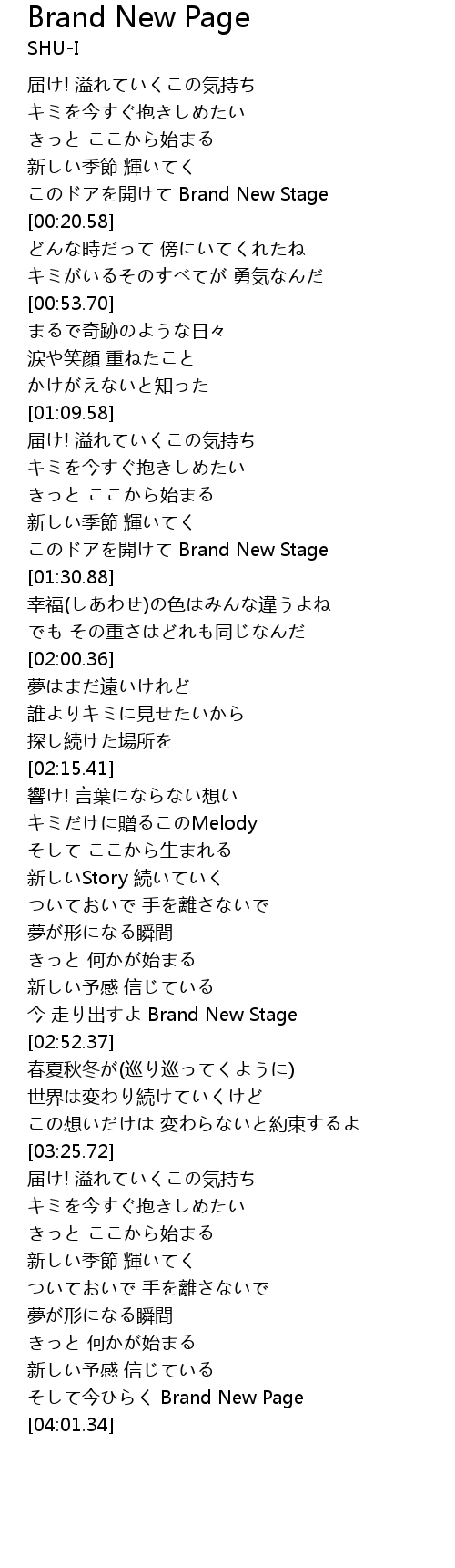 | [03:56.99] | そして今ひらく Brand New Page |