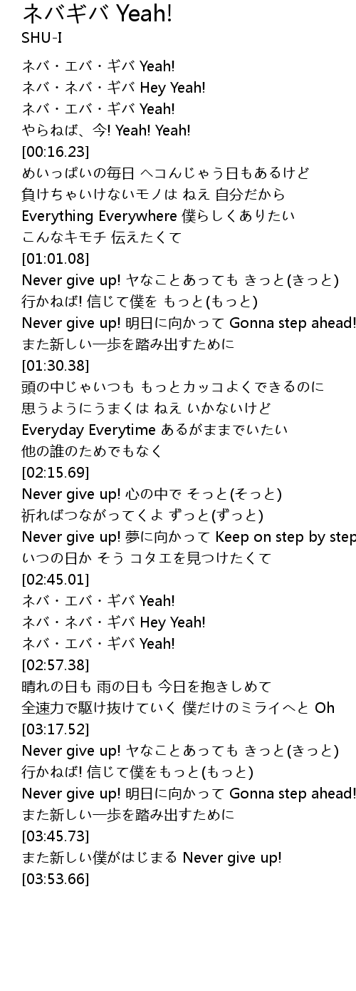 | [02:51.45] | ネバ・ネバ・ギバ Hey Yeah! |