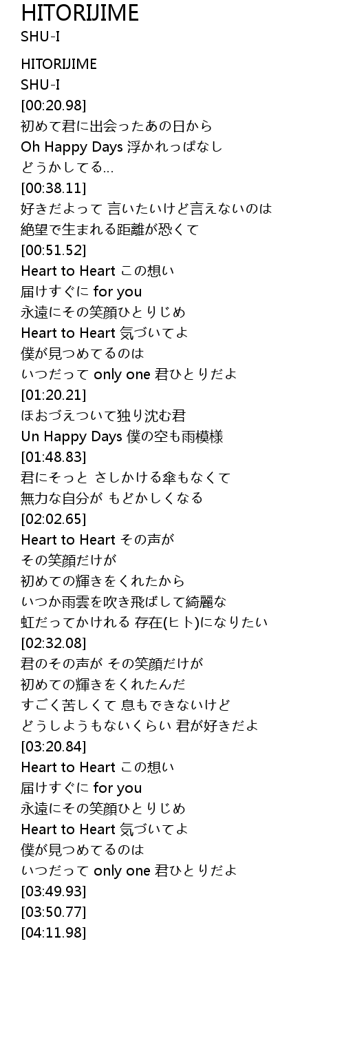 | [03:21.16] | Heart to Heart この想い |