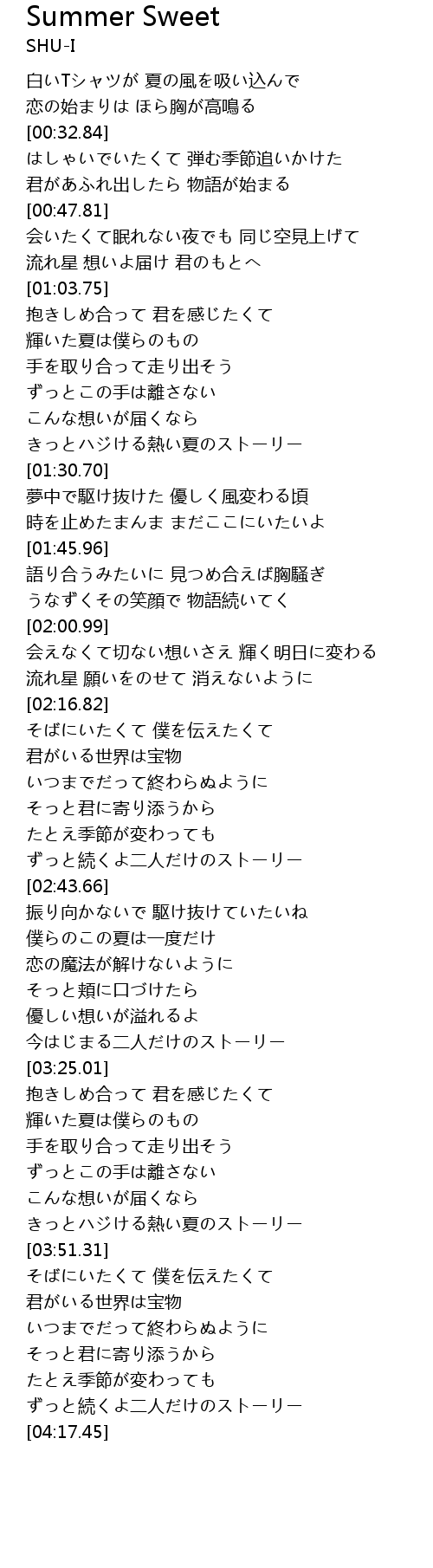 | [03:44.19] | きっとハジける熱い夏のストーリー |