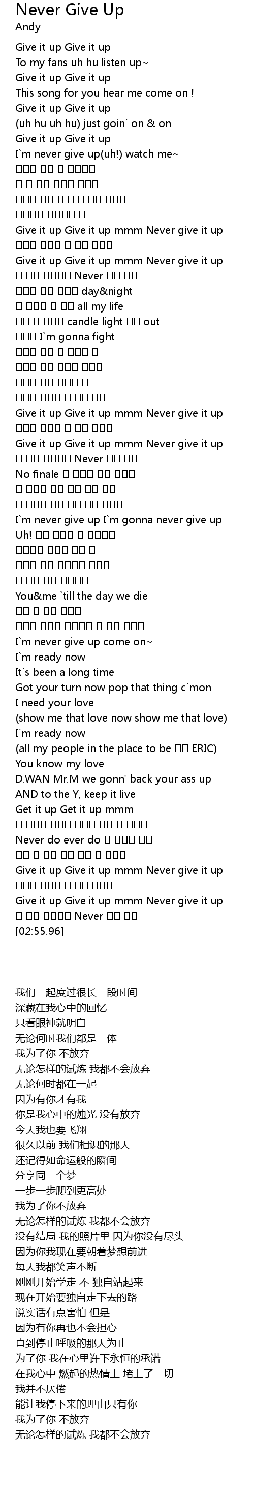 | [02:46.14] | Give it up Give it up mmm Never give it up |
