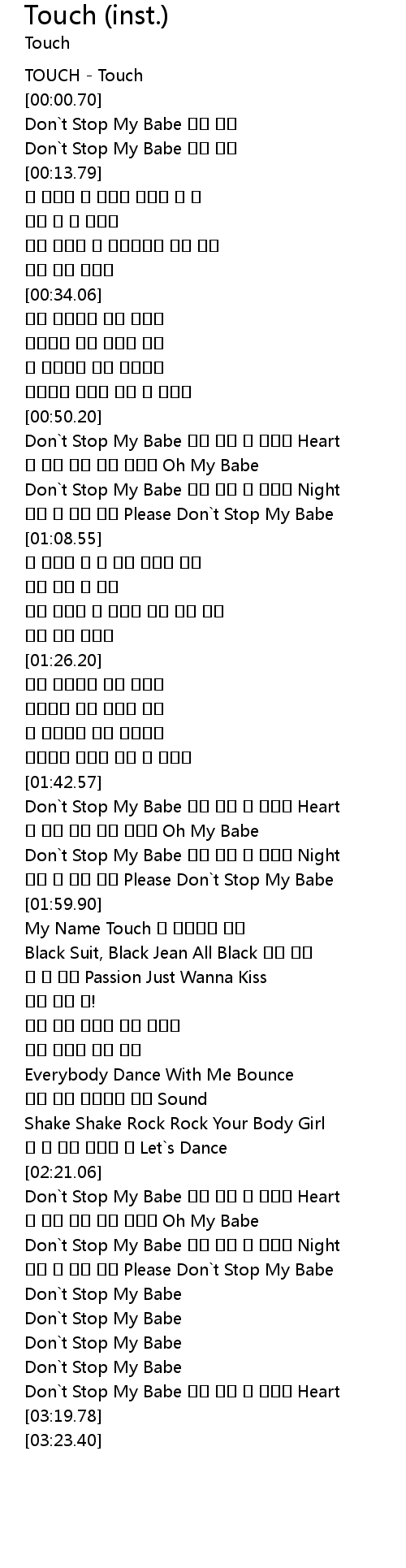 [02:41.47] Don`t Stop My Babe 나를 터치 터 터지는 Heart