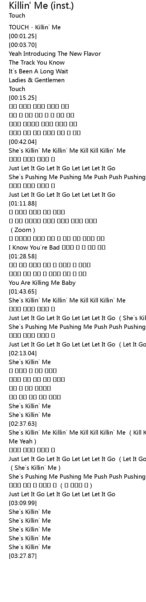 | [00:44.69] | She s Killin Me Killin Me Kill Kill Killin Me |
