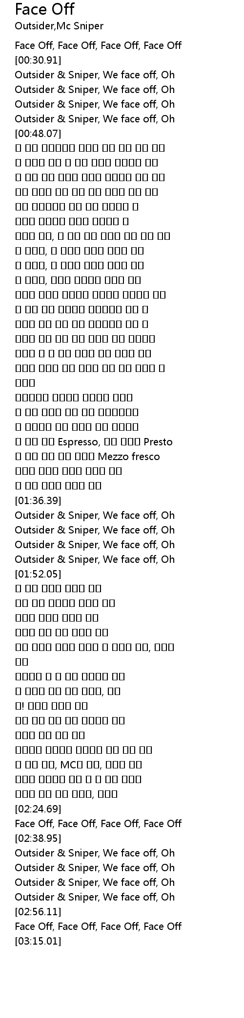 | [02:24.93] | Face Off, Face Off, Face Off, Face Off |
