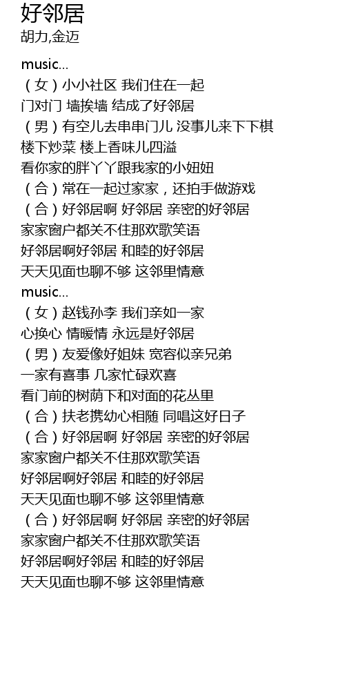 | [01:10.58] | 好邻居啊好邻居 和睦的好邻居 |