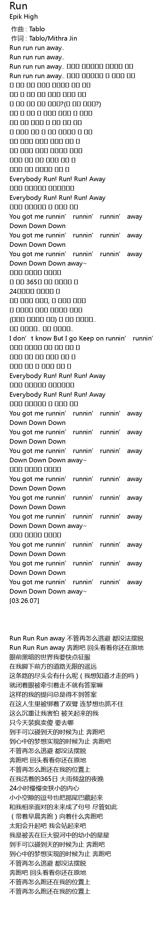 | [01:15.36] | Everybody Run! Run! Run! Away |