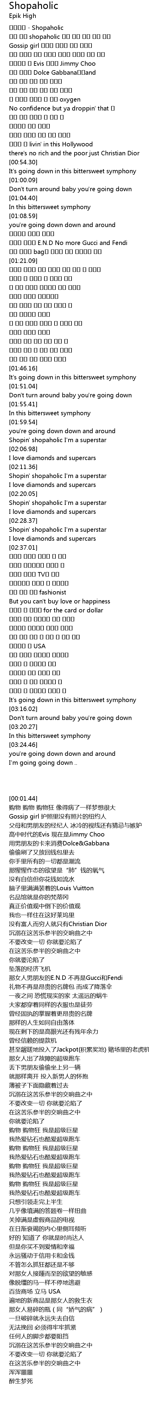 | [02:28.93] | Shopin' shopaholic I' m a superstar |
