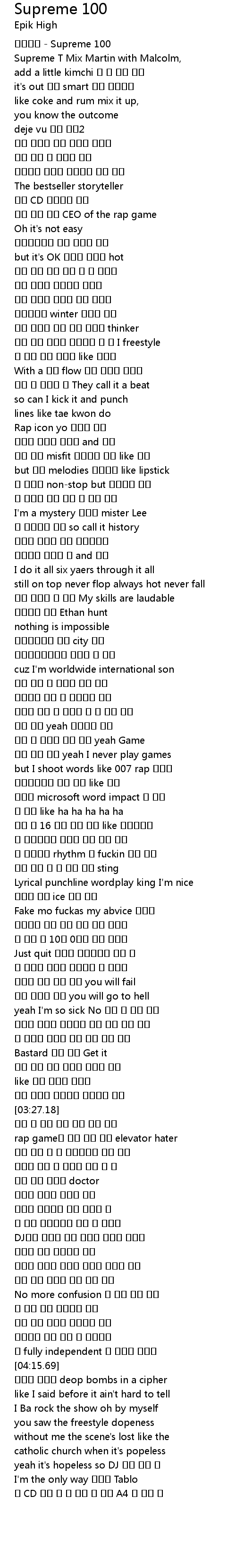 | [00:01.97] | 에픽하이 - Supreme 100 |