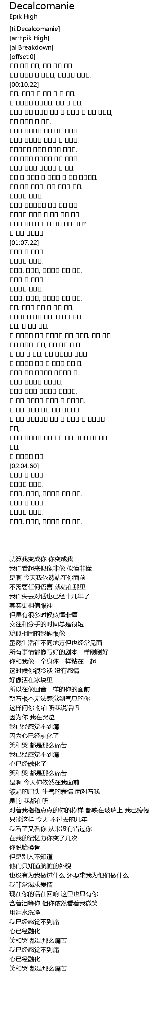 | [00:54.24] | 그럴 때면 차가와. 너는 감정이 없어. |