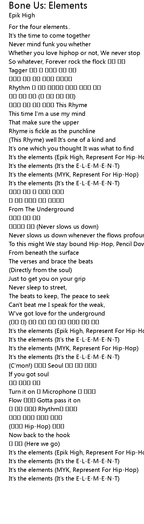 | [00:53.18] | It's the elements (Epik High, Represent For Hip-Hop) |