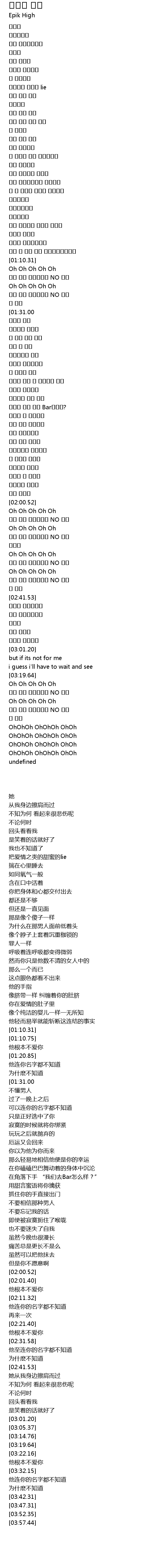 | [02:34.15] | 그는 너의 이름조차도 NO 몰라 |