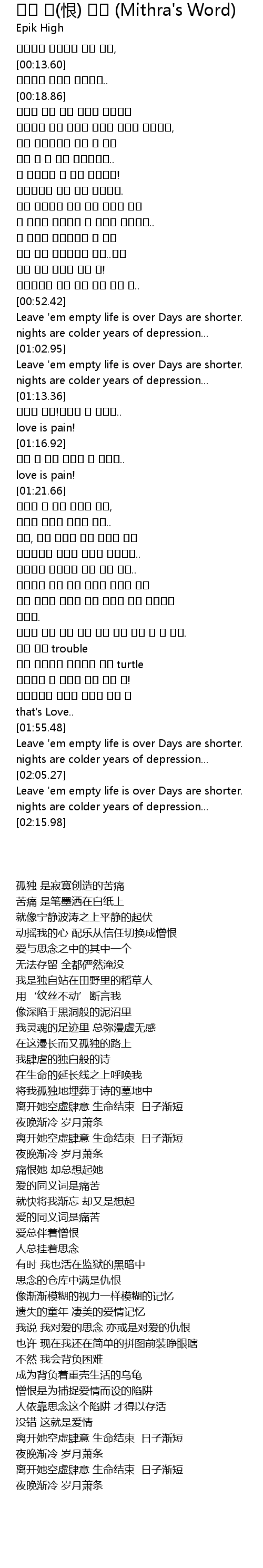 | Song | 고독 한(恨) 사랑 (Mithra's Word) |