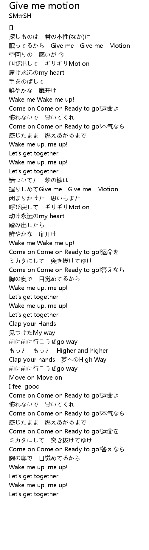 | Song | Give me motion |