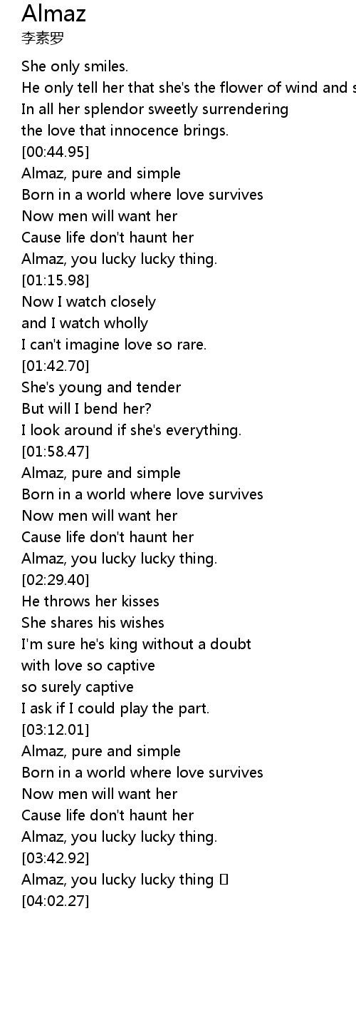 | [03:51.82] | Almaz, you lucky lucky thing |