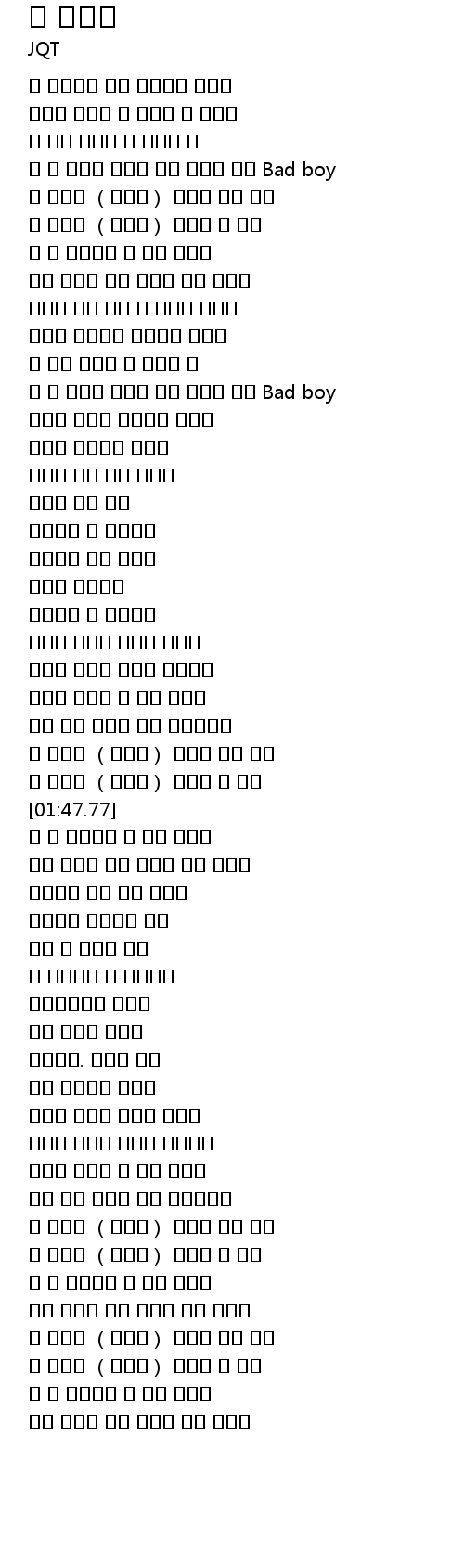 | [01:02.47] | 넌 날 바보로 만들어 버린 세상에 가장 Bad boy |