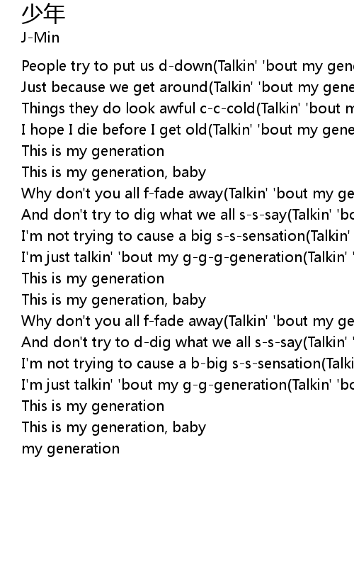 | I'm just talkin' 'bout my g-g-generation(Talkin' 'bout my generation) | |