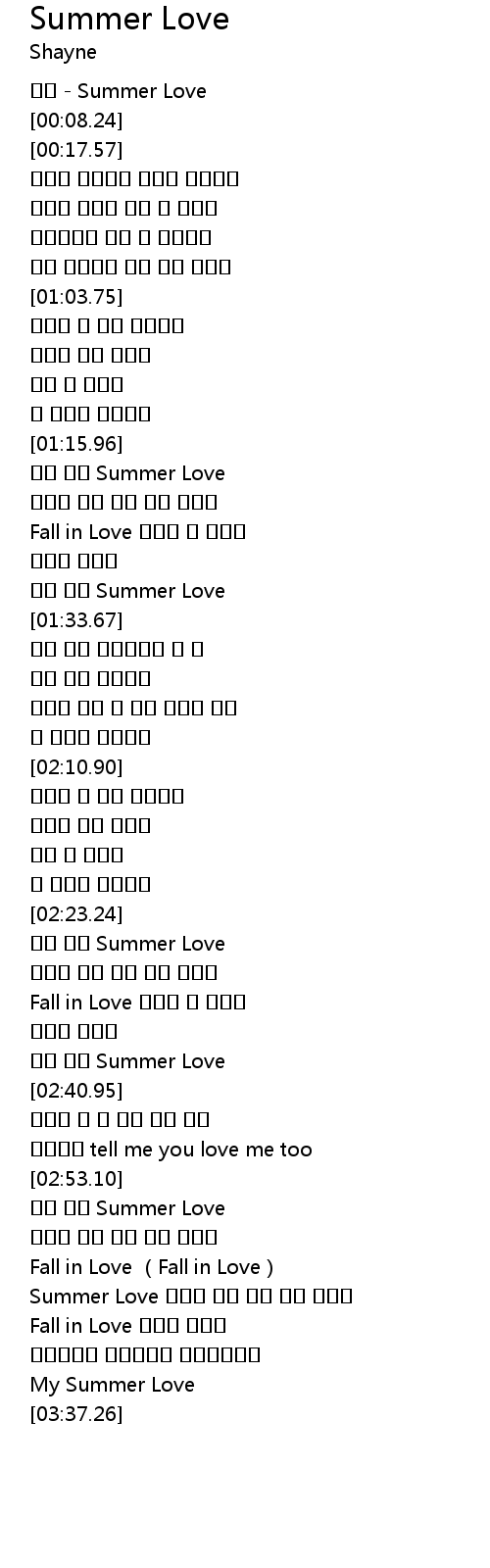 | [00:00.23] | 셰인 - Summer Love |