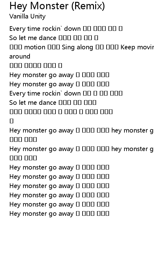 | [02:04.08] | Hey monster go away hey monster go away |
