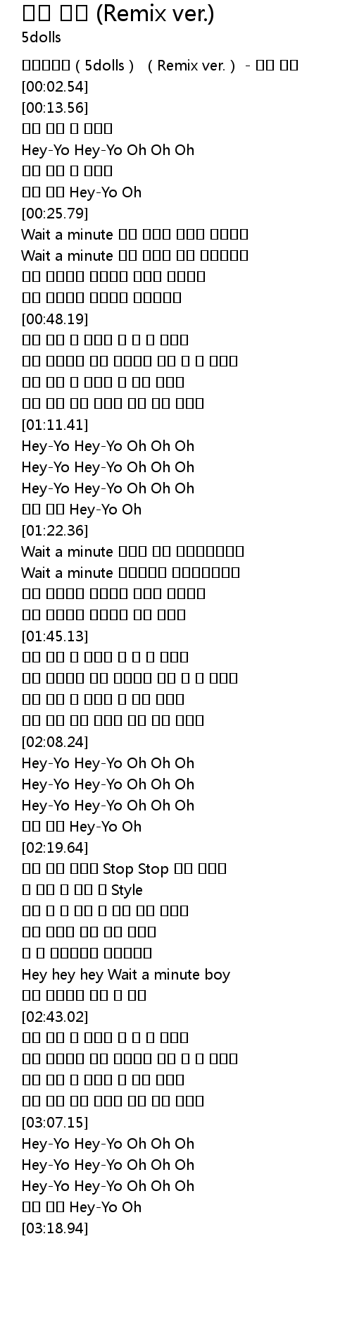 | [03:16.17] | 거기 여기 Hey-Yo Oh |
