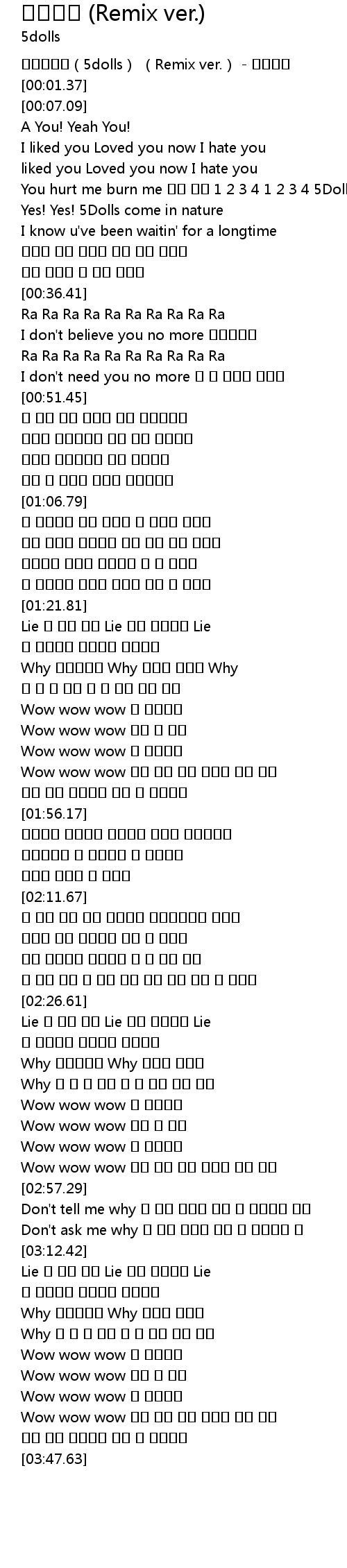 | [01:22.31] | Lie 네 옷에 뭍은 Lie 너무 어의없는 Lie |