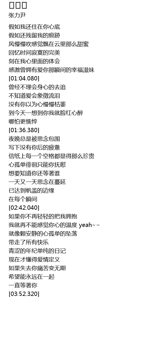 | [00:25.060] | 假如我还住在你心底 |