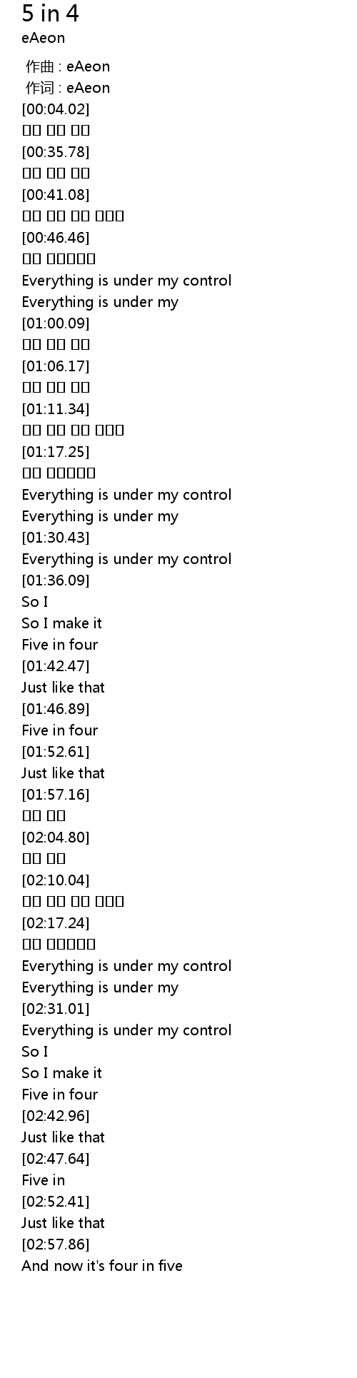 | [01:40.41] | Five in four |