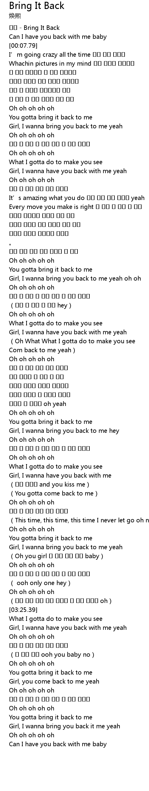 | [01:54.03] | Girl, I wanna bring you back to me yeah oh oh |