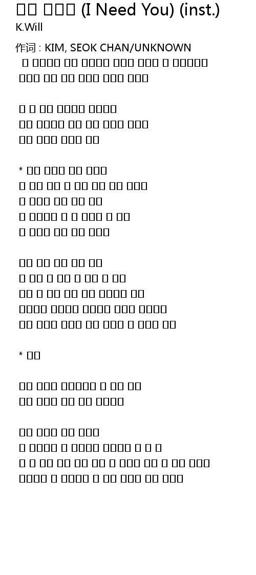 | Song | 니가 필요해 (I Need You) (inst.) |
