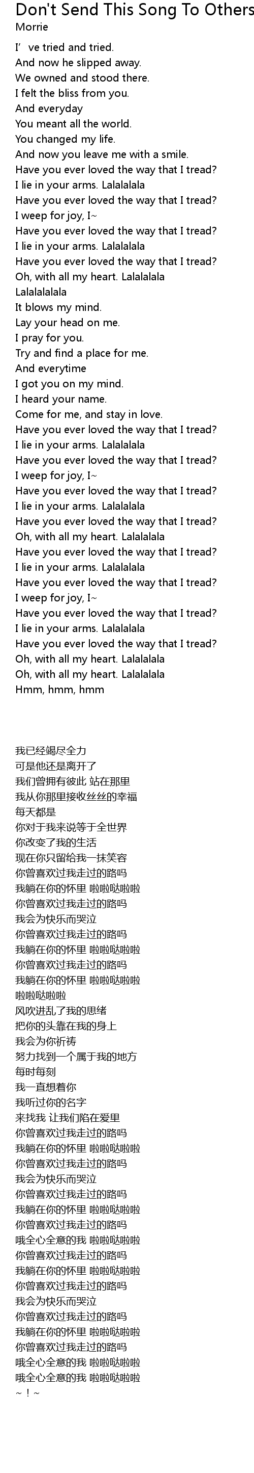 | [00:43.460] | I lie in your arms. Lalalalala |