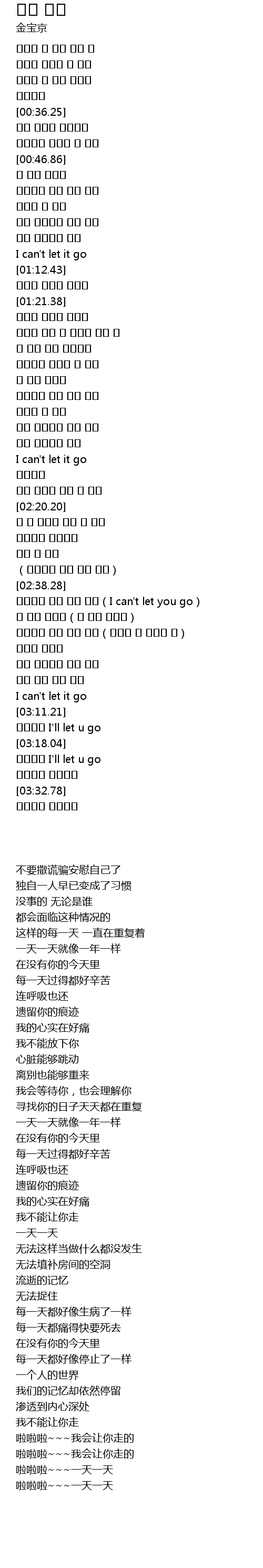 | [02:41.60] | 하루하루 죽을 만큼 아파(I can't let you go) |