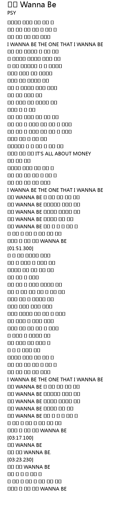 | [03:19.780] | 그게 나의 WANNA BE. |
