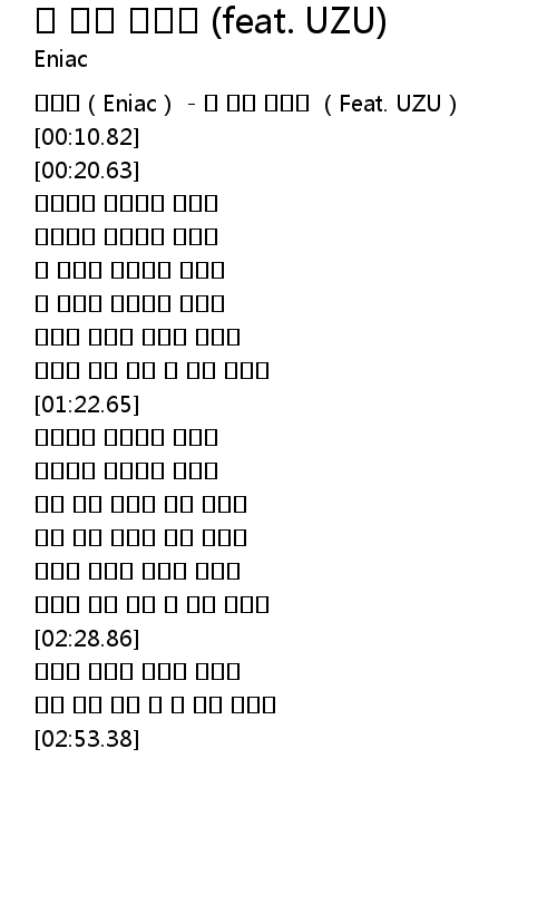 | [00:00.59] | 에니악(Eniac) - 그 겨울 이야기 (Feat. UZU) |