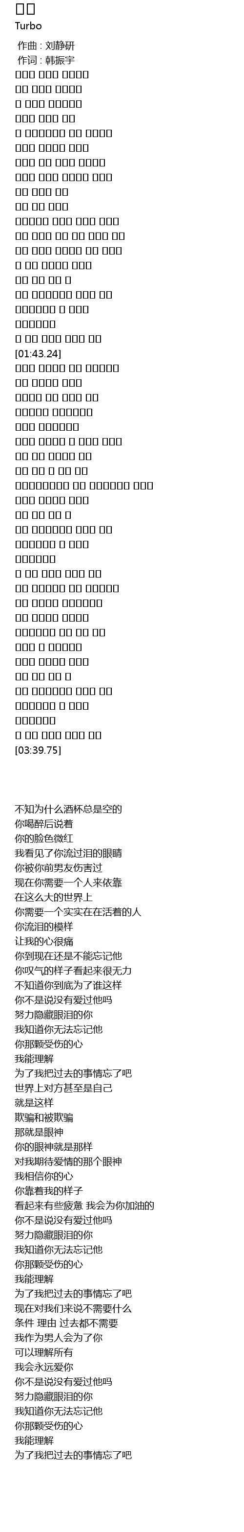 | [00:01.00] | 作词 : 韩振宇 |