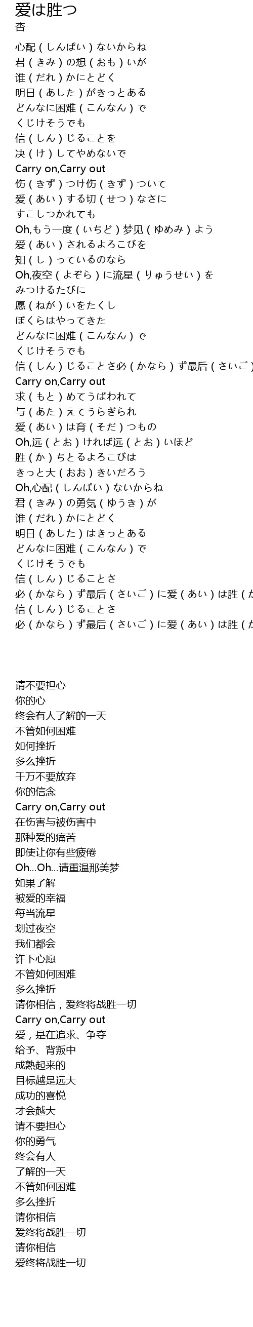 | [03:20.255] | 必(かなら)ず最后(さいご)に爱(あい)は胜(か)つ |