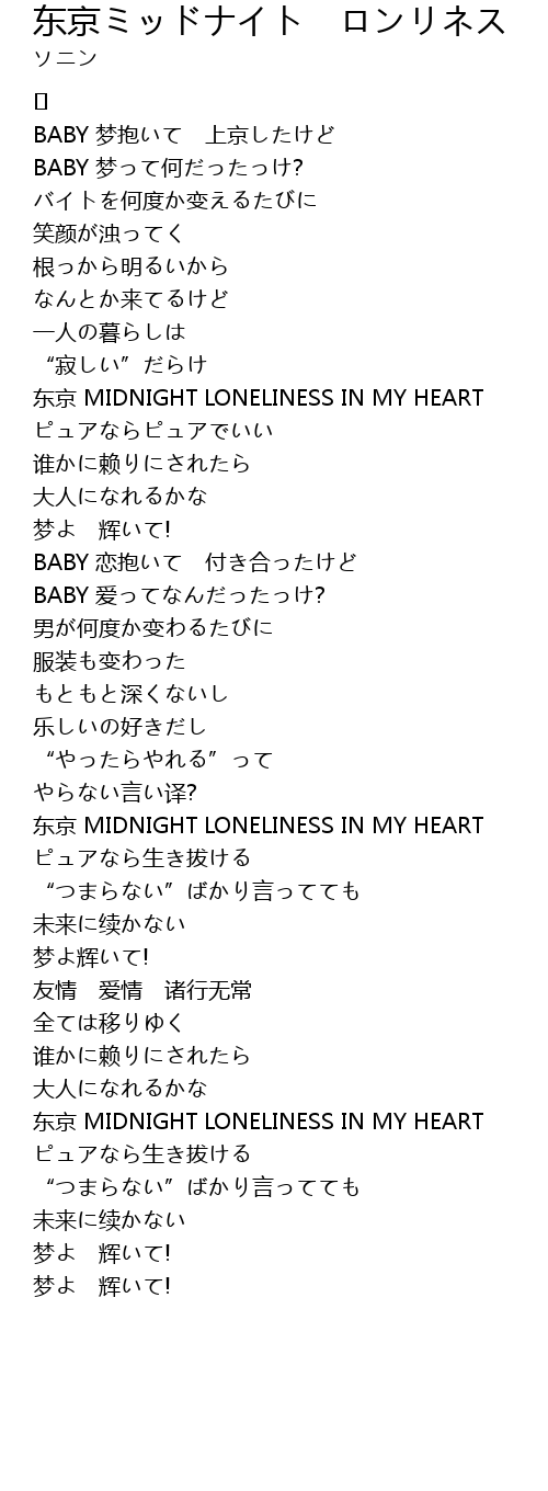 | 东京 MIDNIGHT LONELINESS IN MY HEART | |