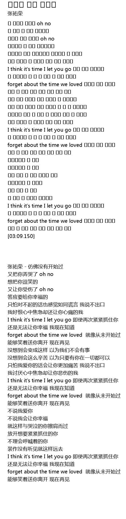 | [02:41.840] | I think it's time I let you go 다시 너를 붙잡아도 |