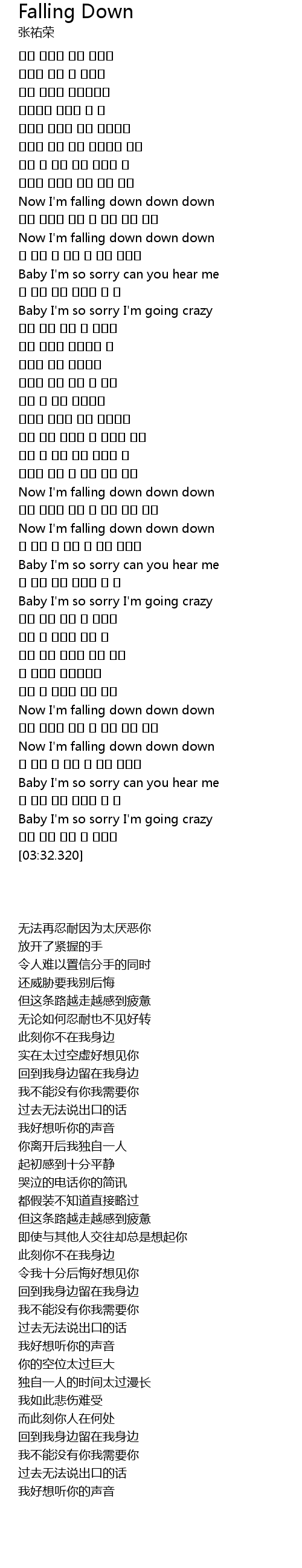 | [03:05.530] | Now I' m falling down down down |