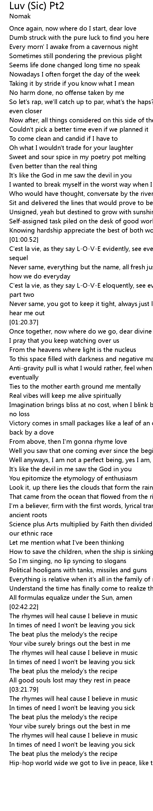 The rhymes will heal cause I believe in music |