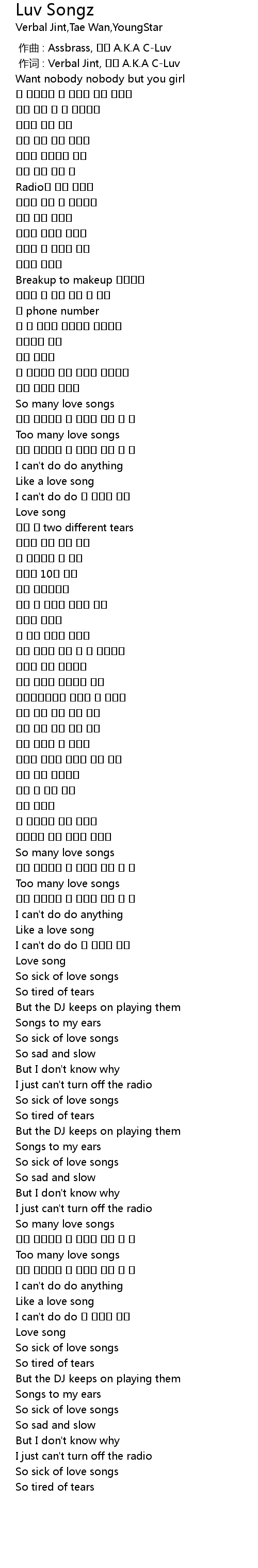 | [00:01.00] | 作词 : Verbal Jint, 태완 A.K.A C-Luv |